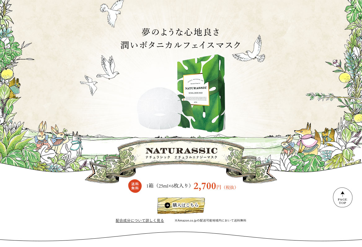 潤いボタニカルフェイスマスク、ナチュラシックのランディングページの